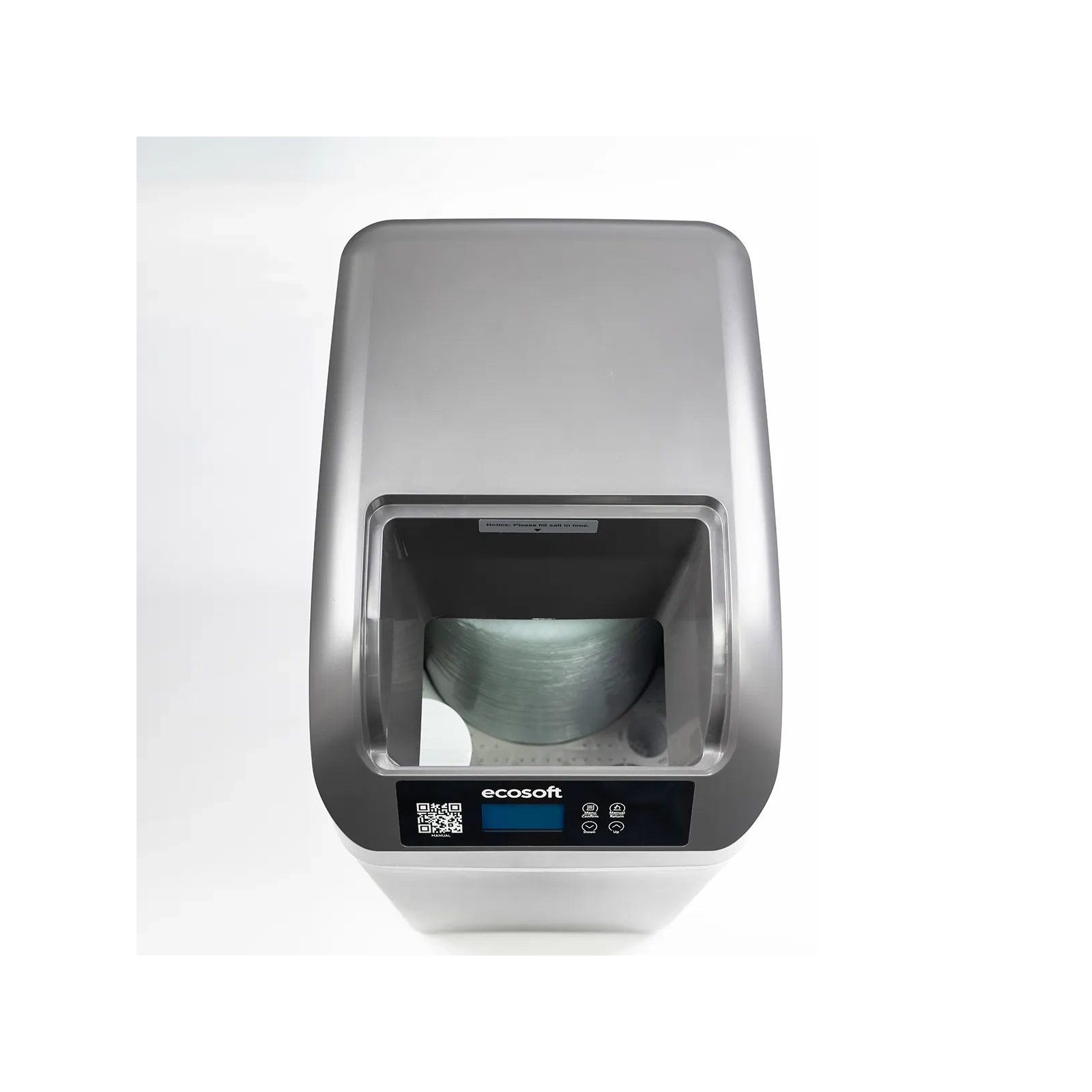 Le système intègre des alertes intelligentes signalant le manque de sel et les besoins de maintenance.