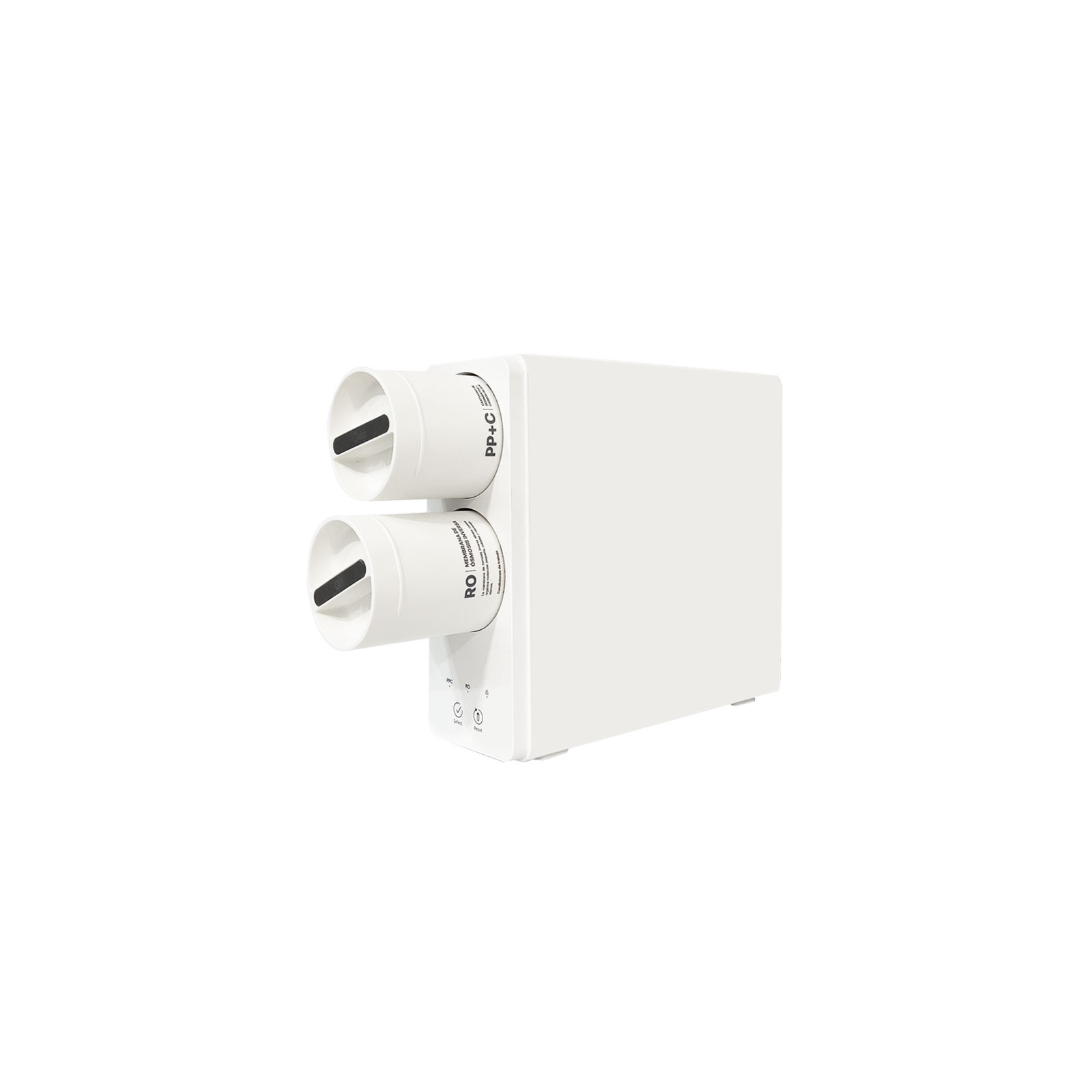 L’entretien de l’Optimos est ultra-simple grâce à ses cartouches à baïonnette, faciles à remplacer sans outils. Le système LED vous indique automatiquement quand les filtres ou la membrane doivent être changés.