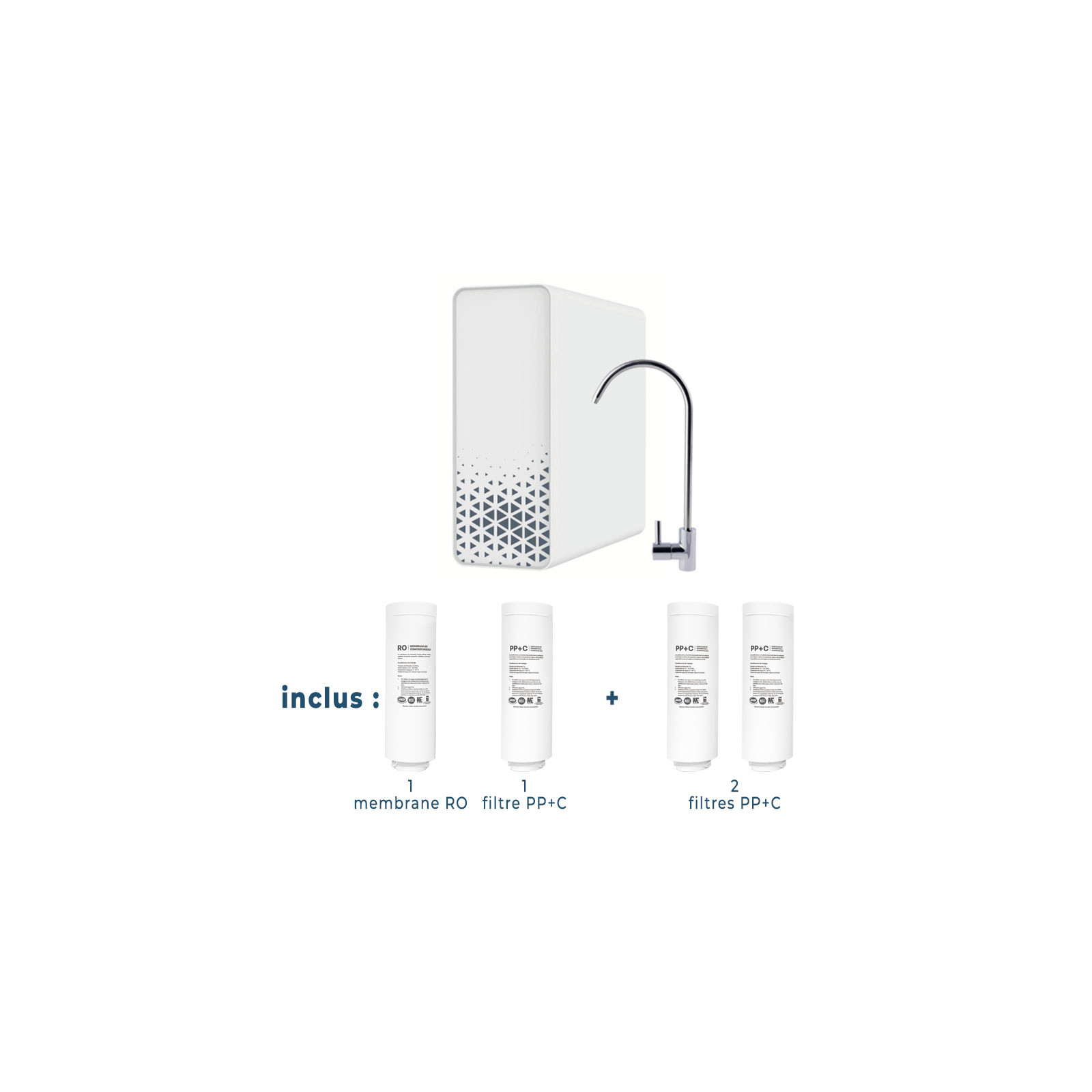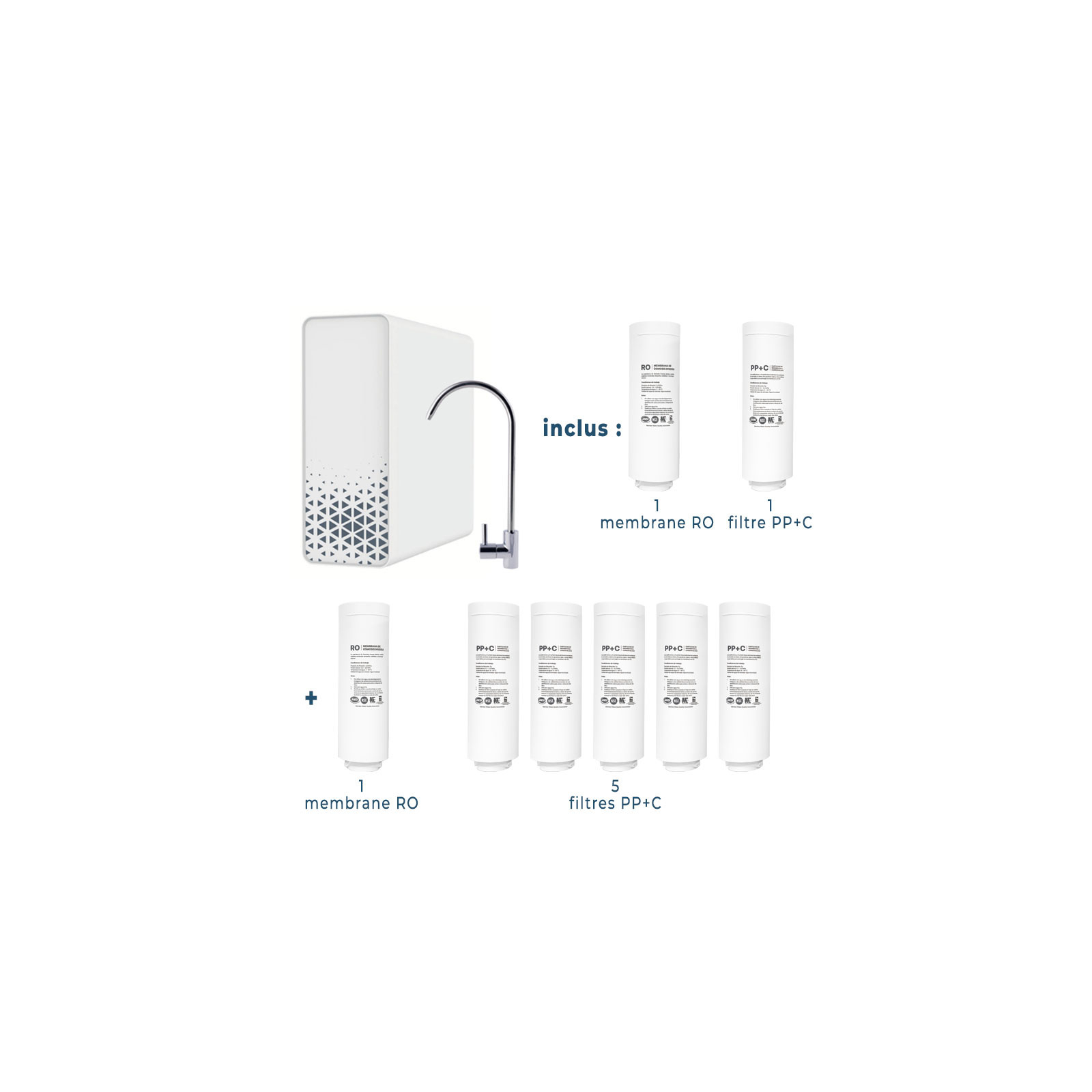 L’entretien est espacé et facilité grâce aux LED indicatrices de remplacement. Voici les cartouches dont vous allez avoir besoin pour entretenir votre osmoseur et pour profiter d'une eau osmosée de qualité au quotidien.