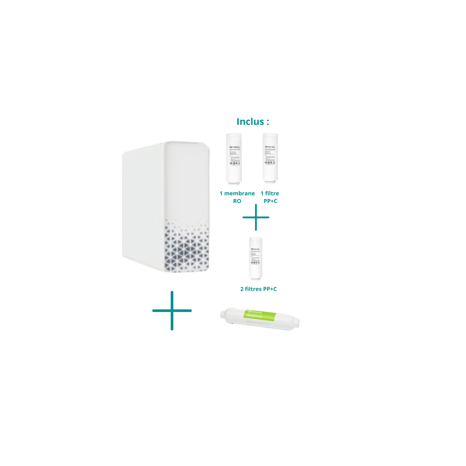 Un appareil sans réservoir, produisant de l’eau osmosée en temps réel.